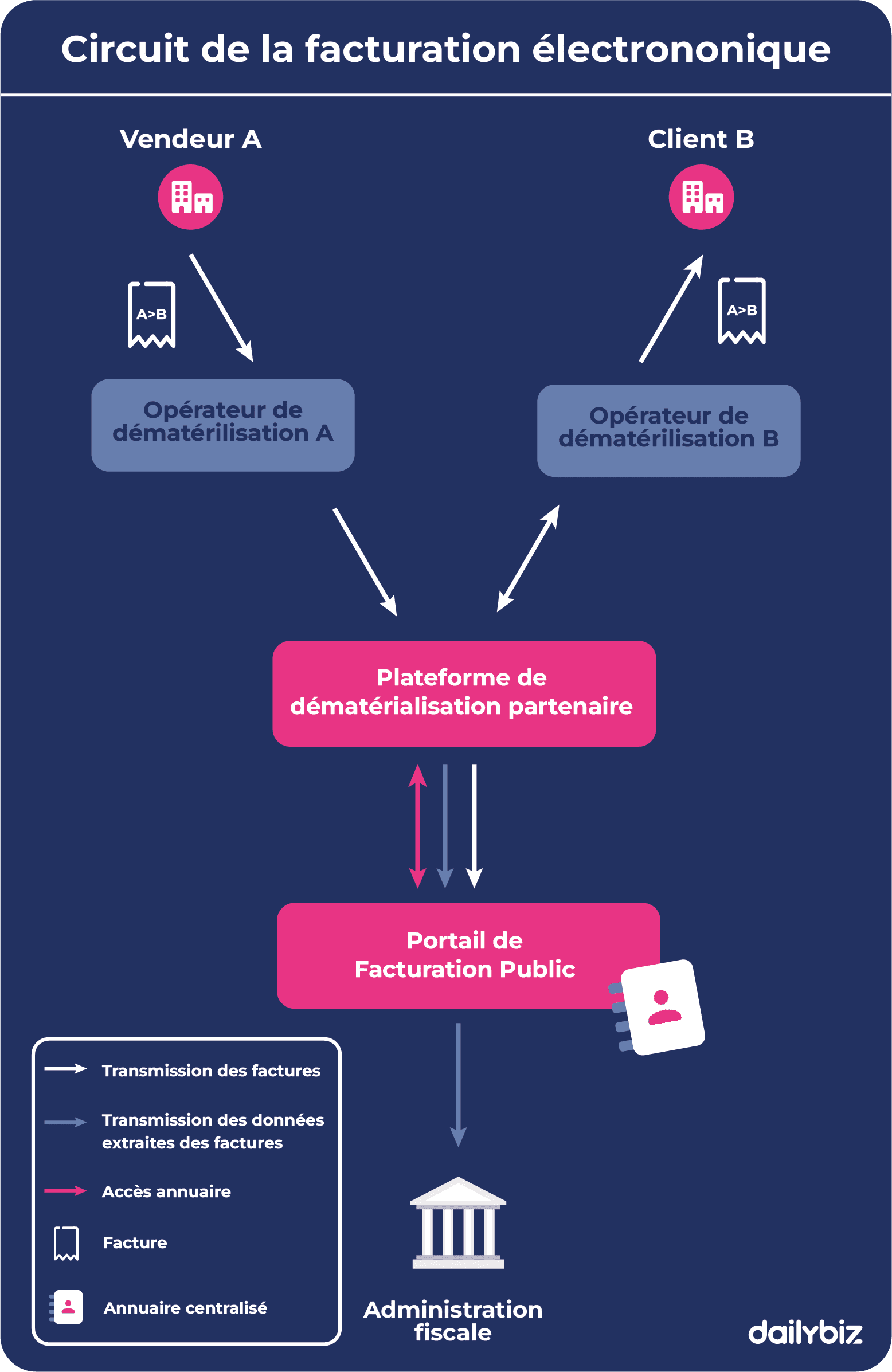 | Définition | Envoi de factures aux administrations | Réception de factures des administrations |